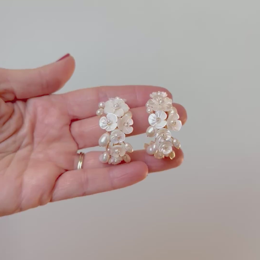 Ivory Floral Bloom Hoops