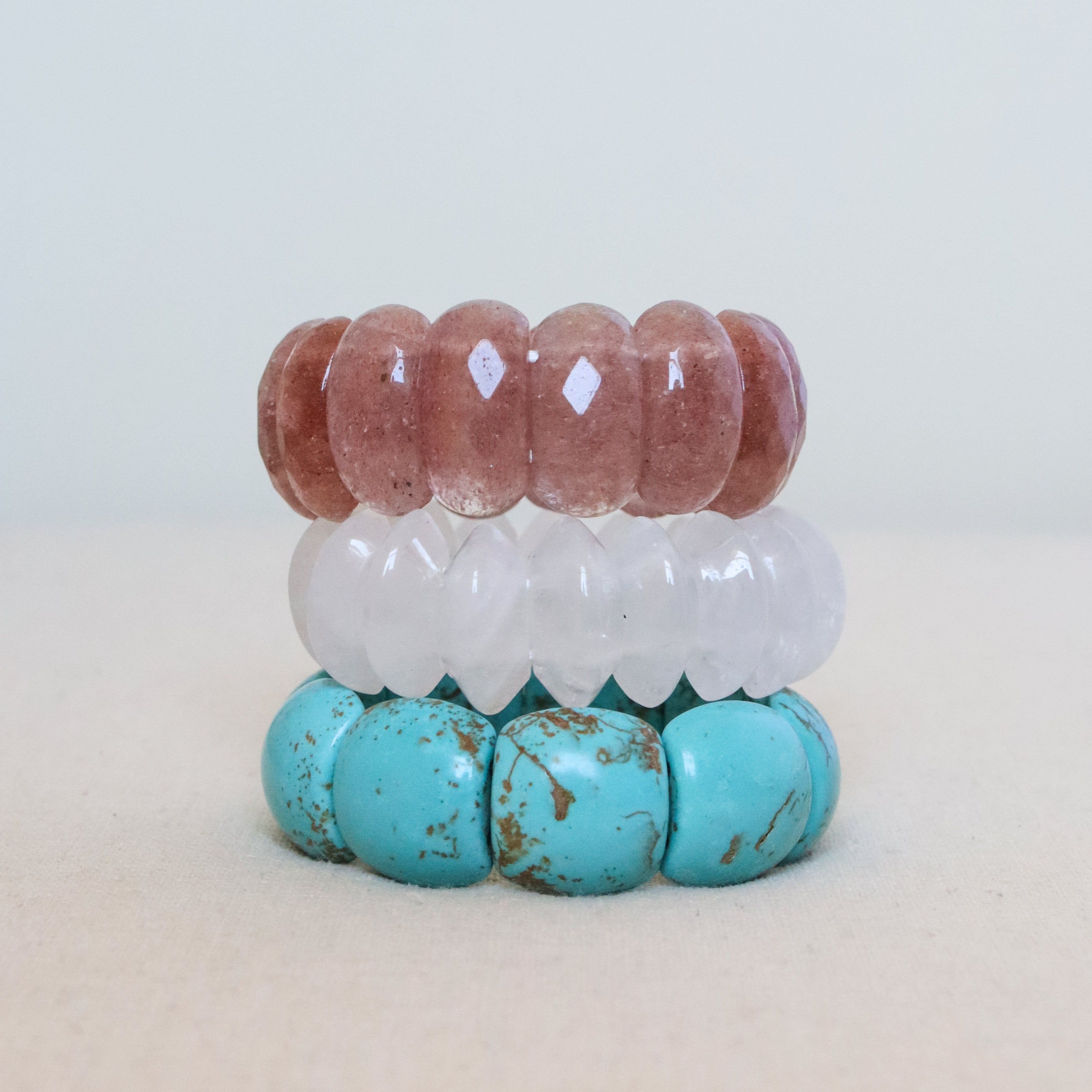 At Vivian Drew, we use natural stones in our designs. Natural stones are a product of nature and may have slight variations in color, pattern, and texture. We think that variations are beautiful & make each piece unique.